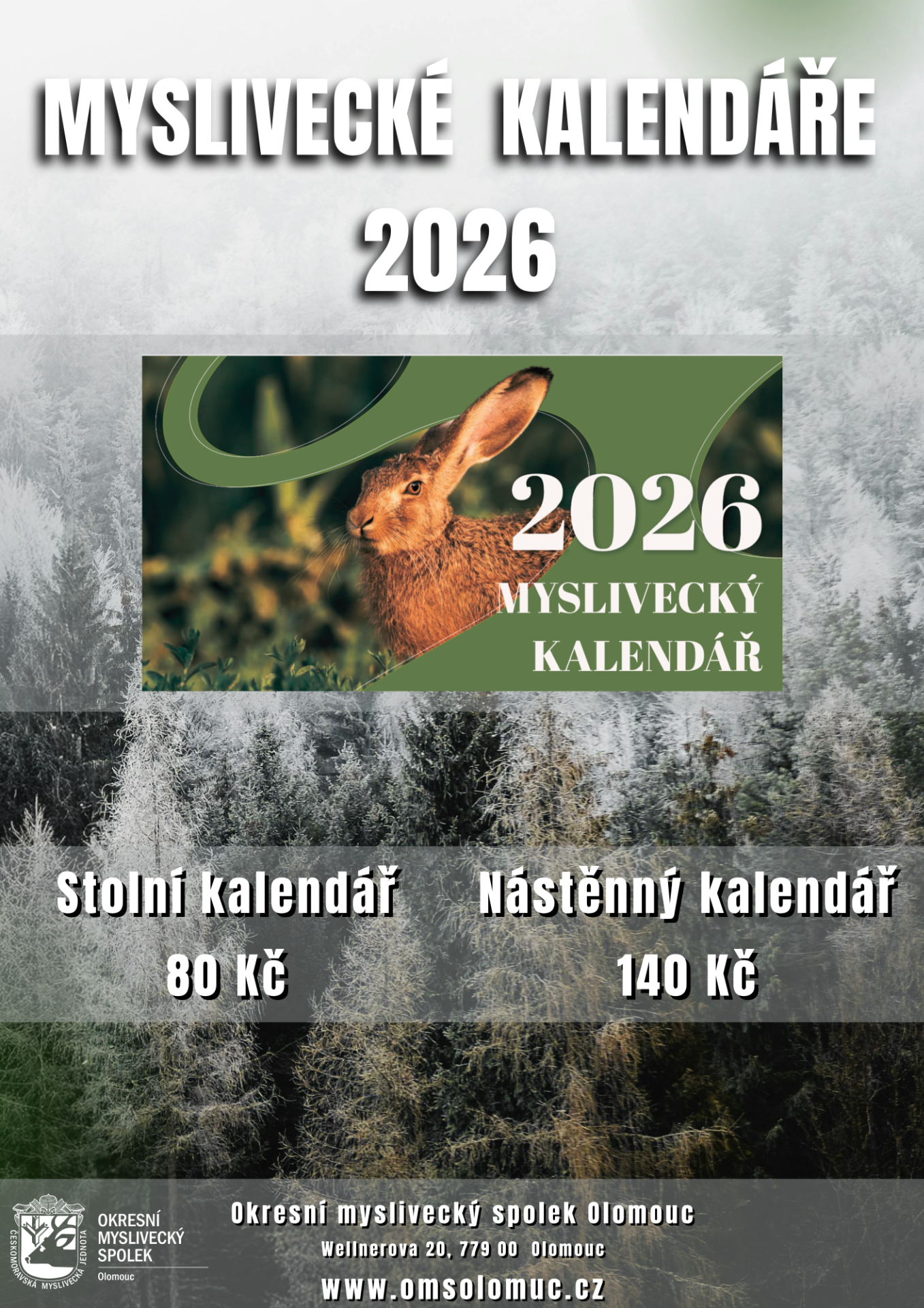 Na sekretariátu jsou již k dispozici oblíbené stolní a nástěnné myslivecké kalendáře.