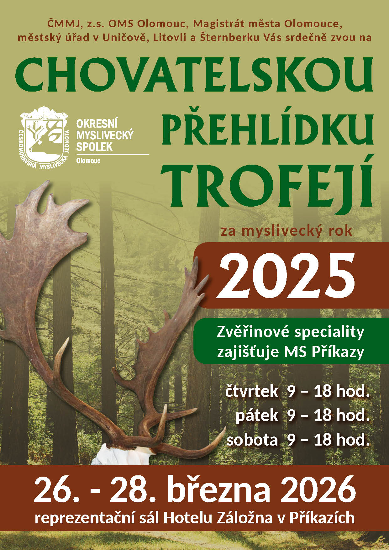 ČMMJ OMS Olomouc ve spolupráci s časopisem Myslivost pořádá odborný seminář na Téma "Srnčí a drobná zvěř" dne 6.5.2025 v přednáškovém sále Magistrátu města Olomouce